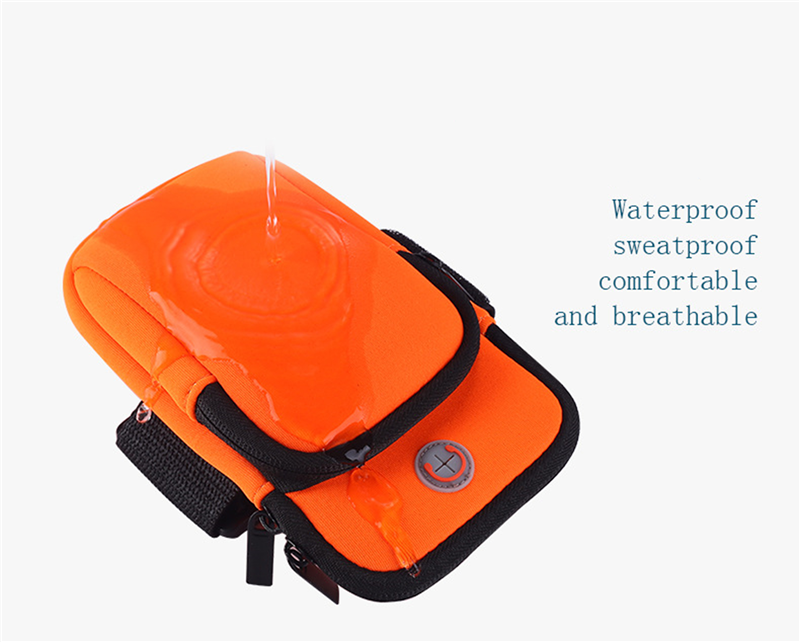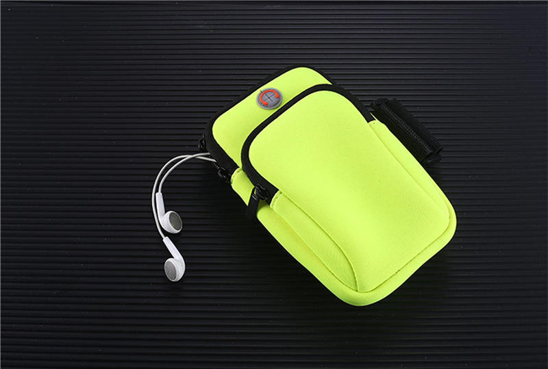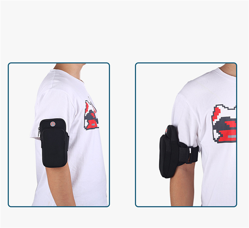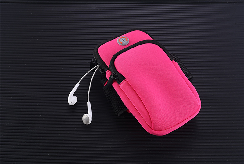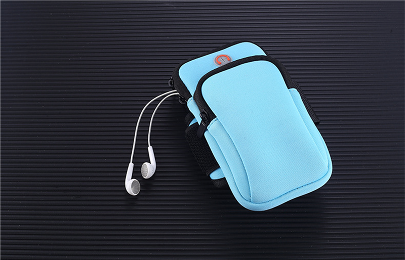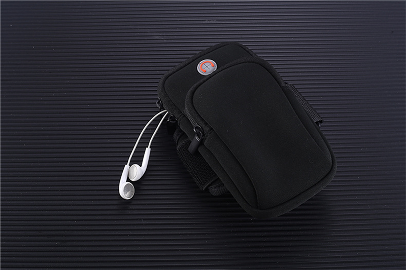 The material of this sports arm bag is waterproof fabric. It can be used when running, cycling, fitness, and hiking. It can store many things. There is also a headphone jack. It is convenient for you to wear headphones when you use it. It is suitable for mobile phones within 6.35 inches. Can custom logo.