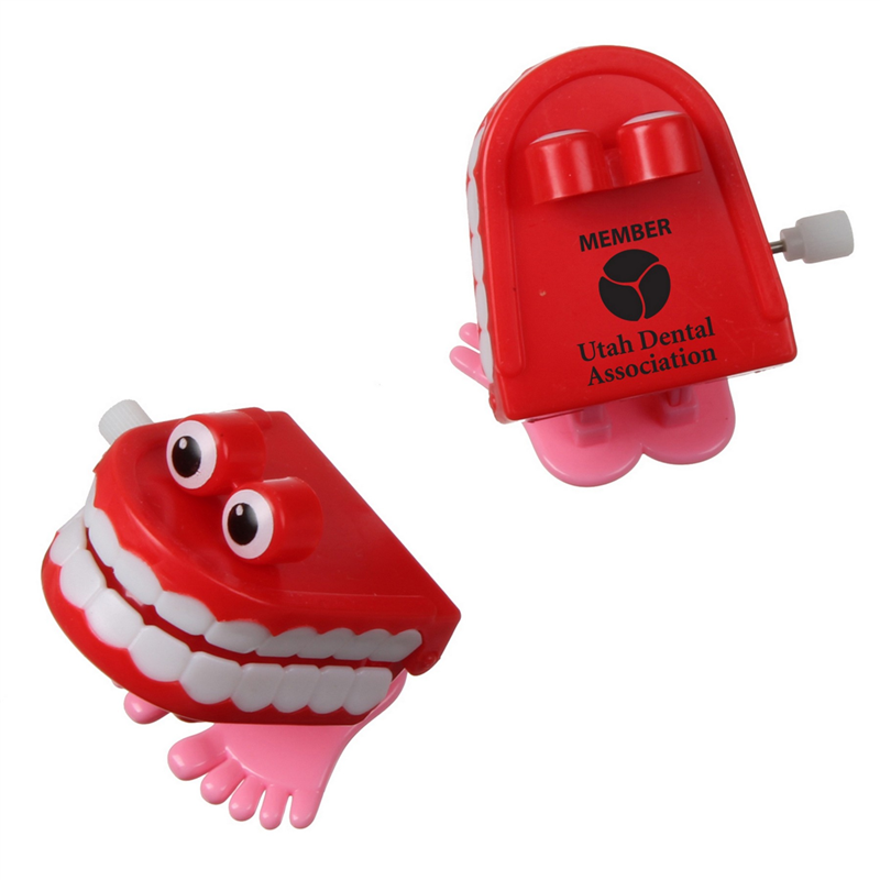 Give your customers something to smile about! These walking chatter chompers with bulging eyes are a classic toy and a great prank. Simply wind up this hilarious toy and watch the teeth rattle and the feet dart & dance. A great gift or giveaway for all dentistry practices and hygienic retailers, these chattering teeth are sure to put a smile on any kid's face. 1 3/8" W x 1 1/2" H