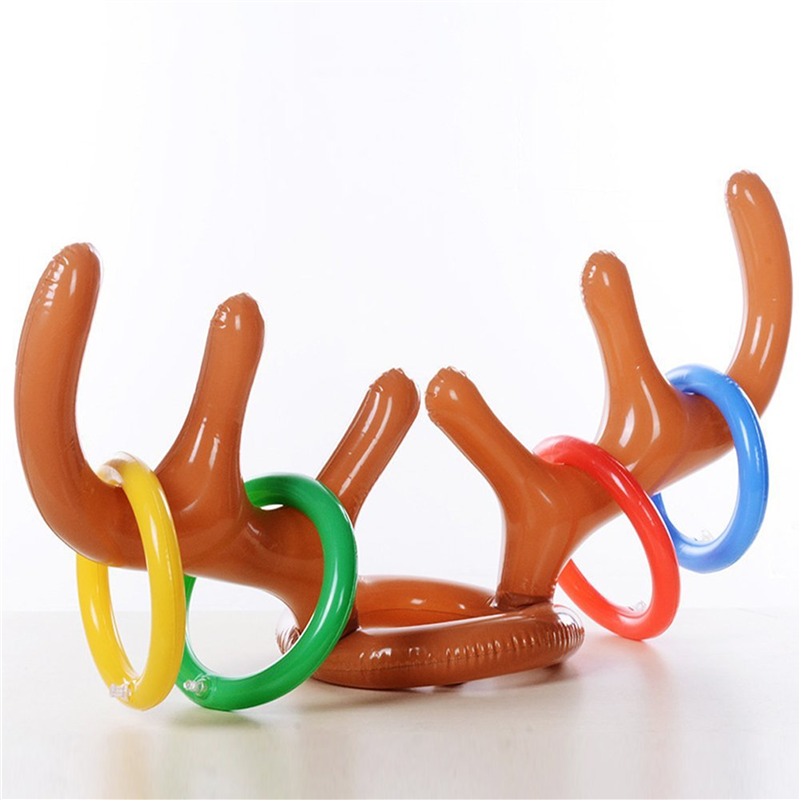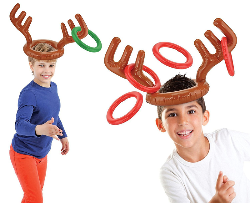 The throwing antler headband is made of environmental-friendly and safety PVC material. The inflatable buckhorn is soft and light. It is comfortable to wear a long time, no harm to human body.The entire set is completely inflatable making it easy to store and carry. You can throw 4 round rings onto the large reindeer antlers on your friend's head and take turns wearing the antlers and make your own games. They will bring joy to your Christmas party! You can also customize the logo.