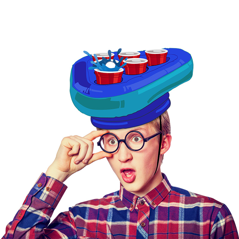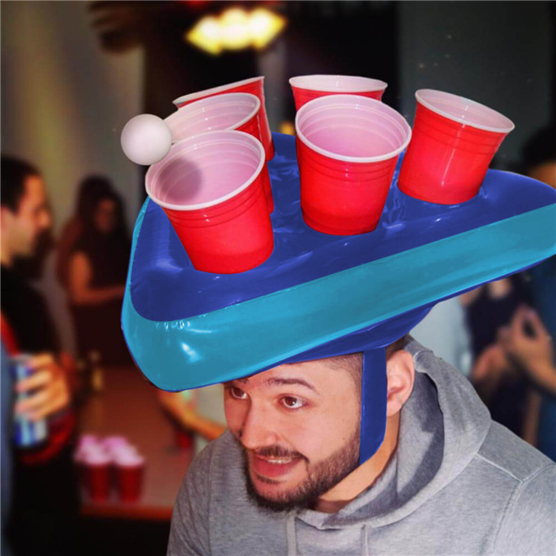 This head-mounted table tennis throwing toy is made of eco-friendly and safe PVC material. The product is inflatable, soft and light. It is comfortable to wear for a long time without harm to the human body. The whole set of equipment is fully inflated and easy to store and carry. The hole on the product can hold a cup, you can pour beer in it, or throw ping pong balls for games. They will bring joy to your gatherings, parties, etc.! You can also customize the logo.