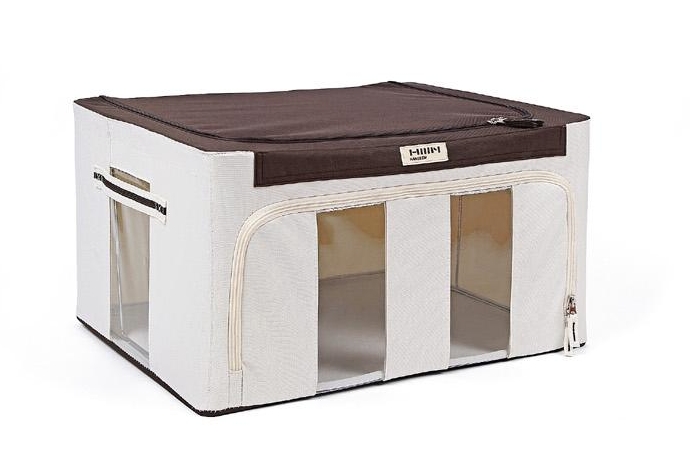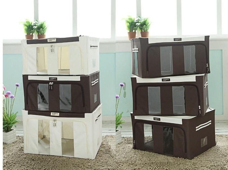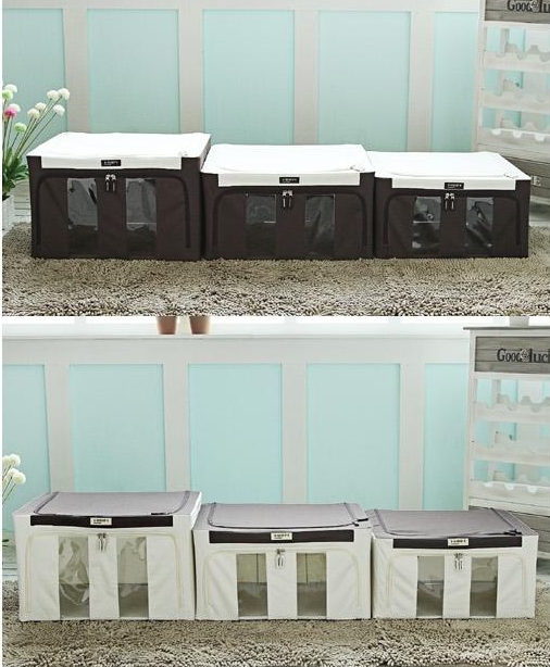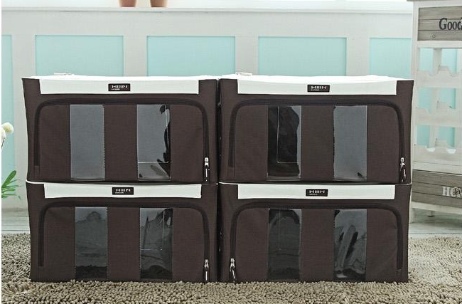 This storage box is made of 600D fabric, 1000g carboard, 0.13mm transparent PVC and PP webbing. Its double clear windows design will make you relaxed. It could be used for clothes storage, bedding products storage, householding products storage, which makes your house clean and organized.Customized design are welcome.
