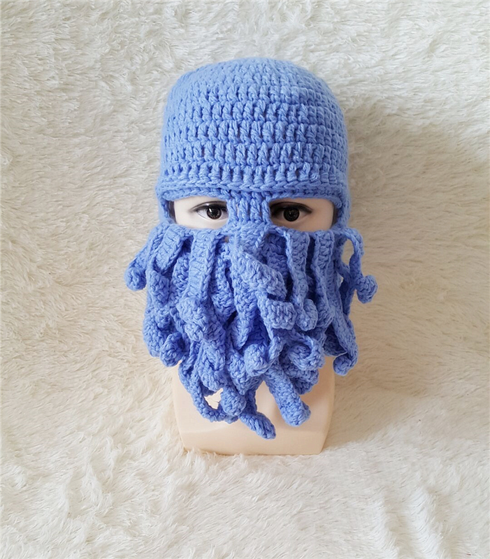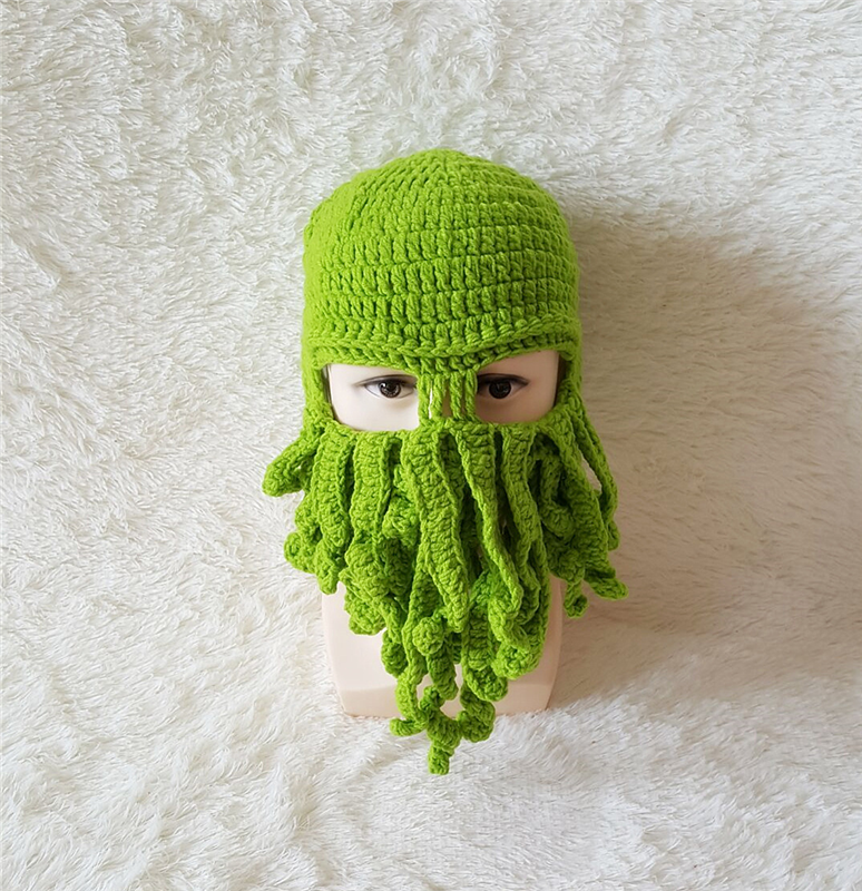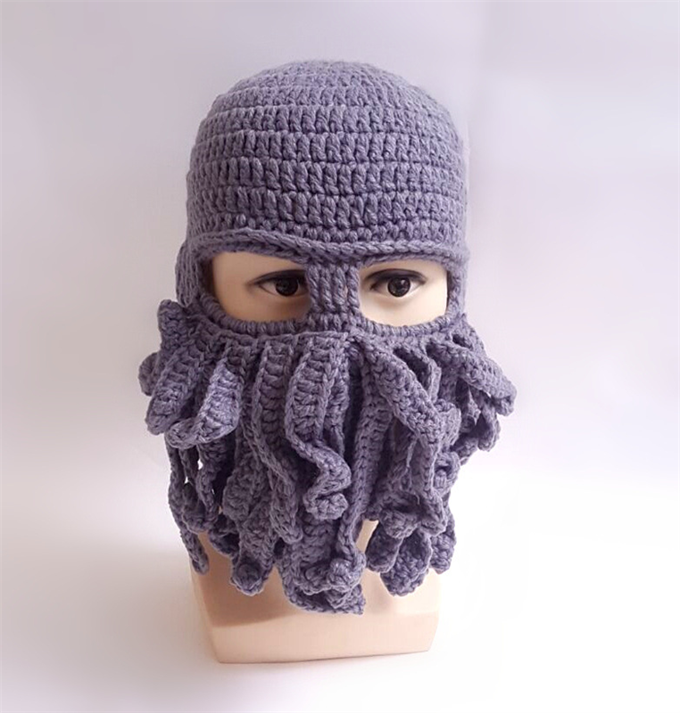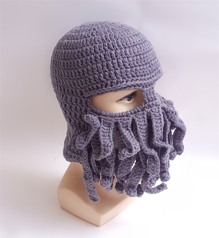 Squid hat. Handmade woolen octopus hat. Face kini octopus ski hat. Woolen beard hat.