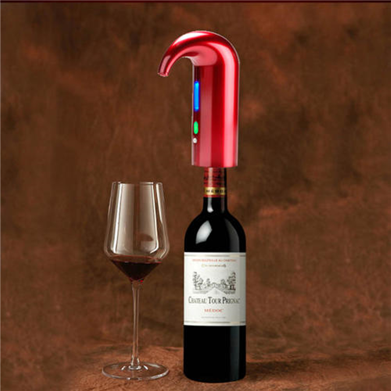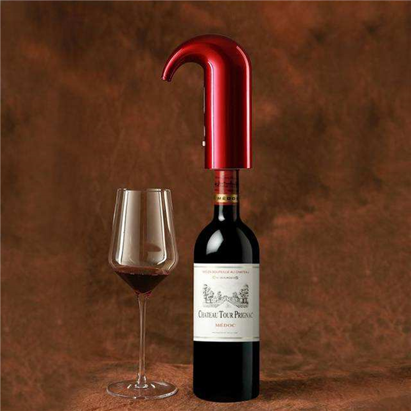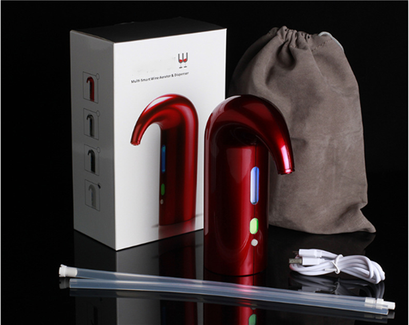 The material of this electronic decanter is ABS. It performs high-pressure oxygenation, red light, and magnetic force on red wine to wake up the wine in three seconds. Shorten the sobering process. Very suitable for home use and gift giving. The size, shape and position of the logo can be customized.