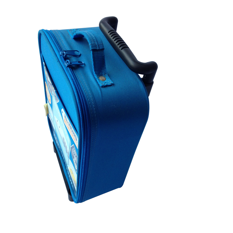 This luggage is made of PVC.The ample space could hold a lot of stuff and it's easy to see the inside of the bag,it also has cute design on the front of the luggage case, it's a good case for your travelling.