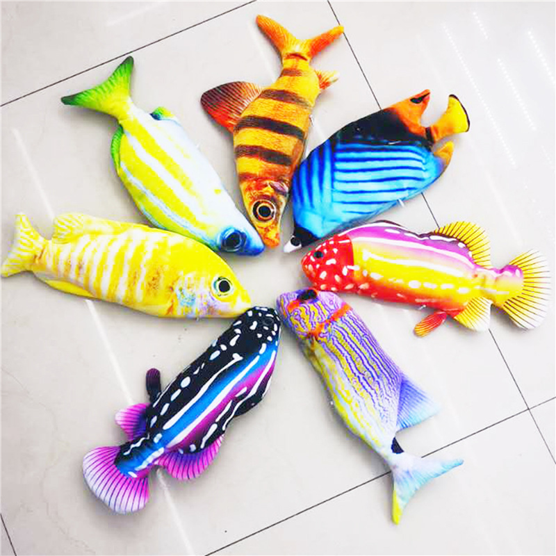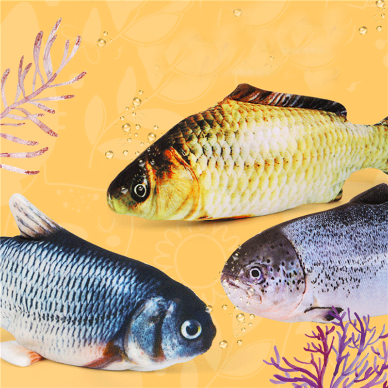 The material of this electric jumping fish is PP cotton. This is a simulation toy electric fish. The shape is realistic. It simulates various fish shapes. Children can learn cognitively while playing. It can also be used as a cat's toy. When your cat touches the toy, the fish cat toy will automatically move and swing and make a sound, attracting your cat to play and kick, and you do not have to replace the battery.