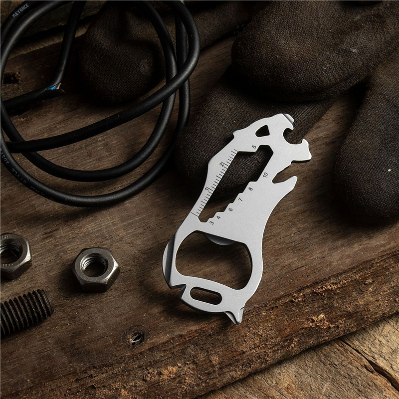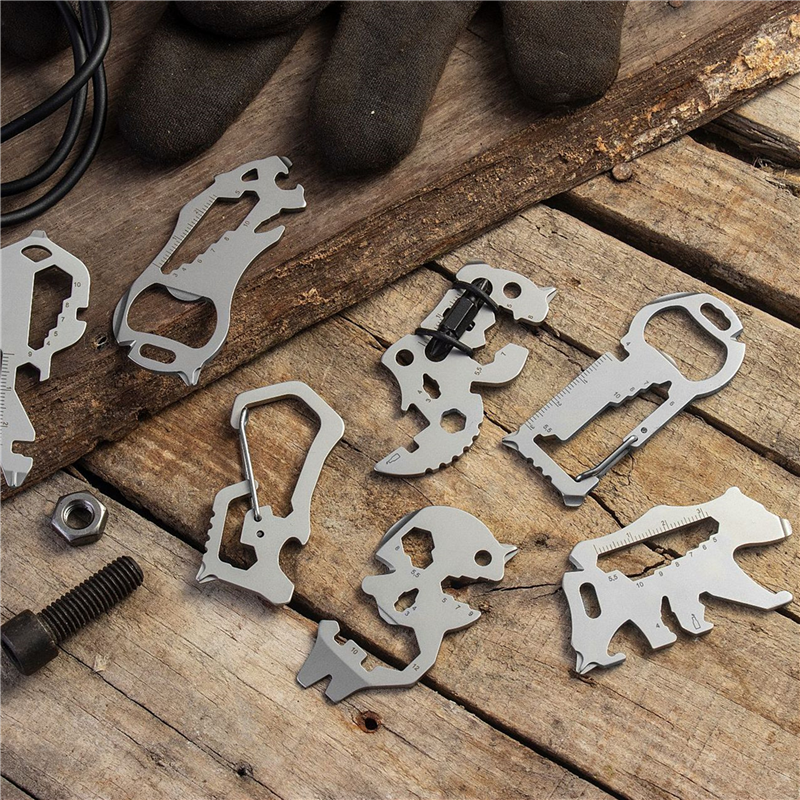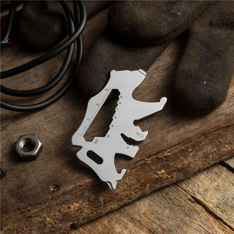 This multi-function tool card is made of high-quality stainless steel, which has the characteristics of wear resistance, high temperature resistance, low temperature resistance, high hardness, and high toughness. And there are a variety of shapes to choose from, with bear, tiger, rhino and other shapes. The product has a hanging hole design, which can be hung on keys, belts, etc., which is very convenient to carry. This tool card has many functions, such as opening bottles, opening cans, and screwing screws. You can also print the company's name or logo on the surface of the product.