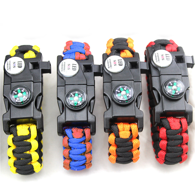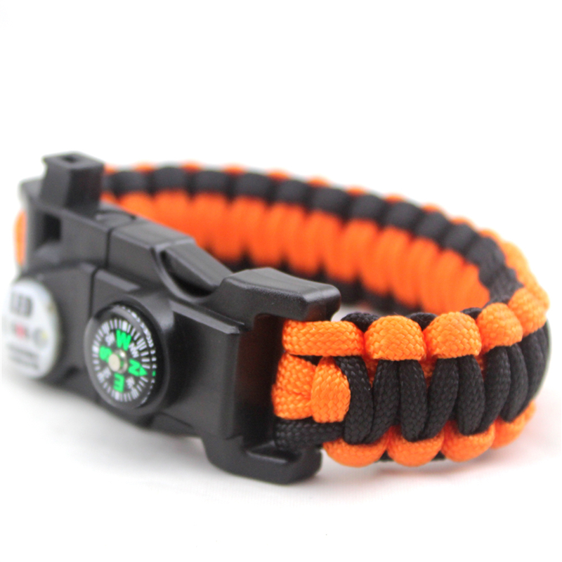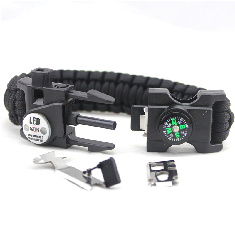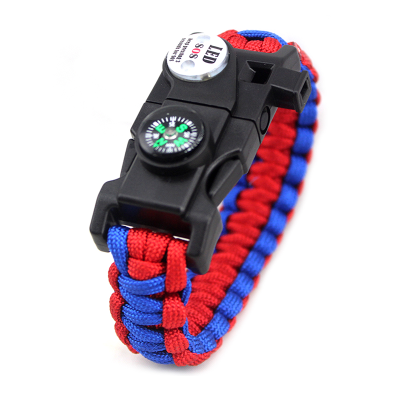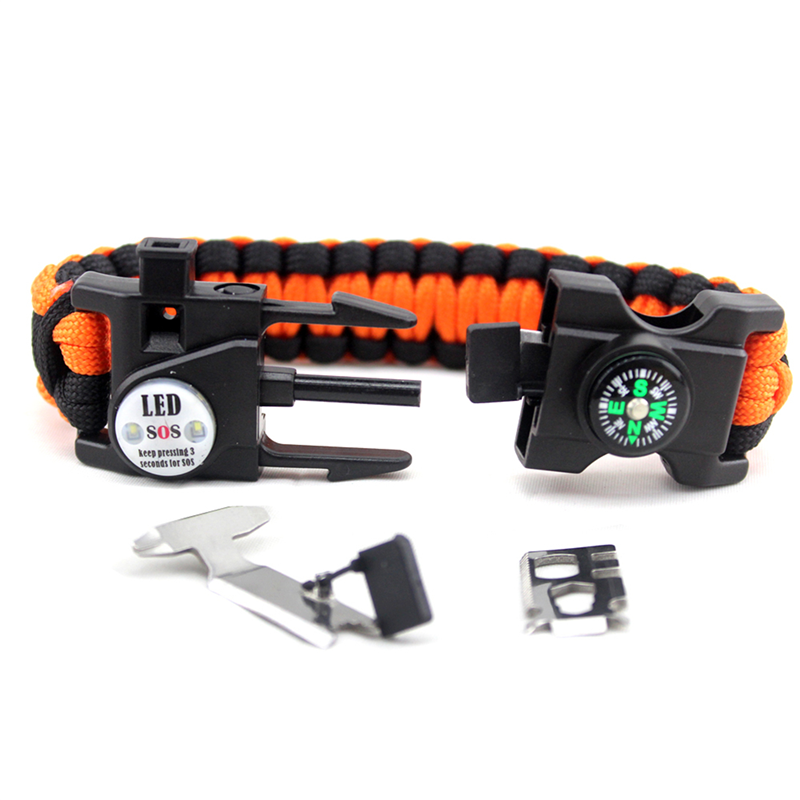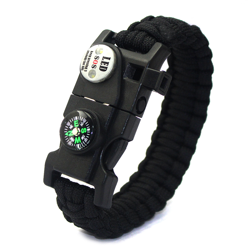 This outdoor survival bracelet has many functions, such as compass, light stick, SOS LED light, umbrella rope and so on. There is also a tool card with 8 functions in this bracelet. This product not only looks exquisite, but also has a very clever design, combining multiple functions into one. You can wear it on your hand when going out for activities, which is very convenient to carry. It is suitable for outdoor outings, wild adventures, outdoor recreation, daily accessories and other occasions.You can also print the company's name or logo on the surface of the product.