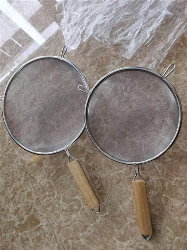 Fine Mesh Strainer with 5.5 Inch Large Stainless Steel Double Fine Mesh and Reinforced Frame and Comfortable Wooden Handle Grip - Designed for Chefs. we have different size of the strainer, please contact with us for more detials. Your logo can be customized on the wood handle.