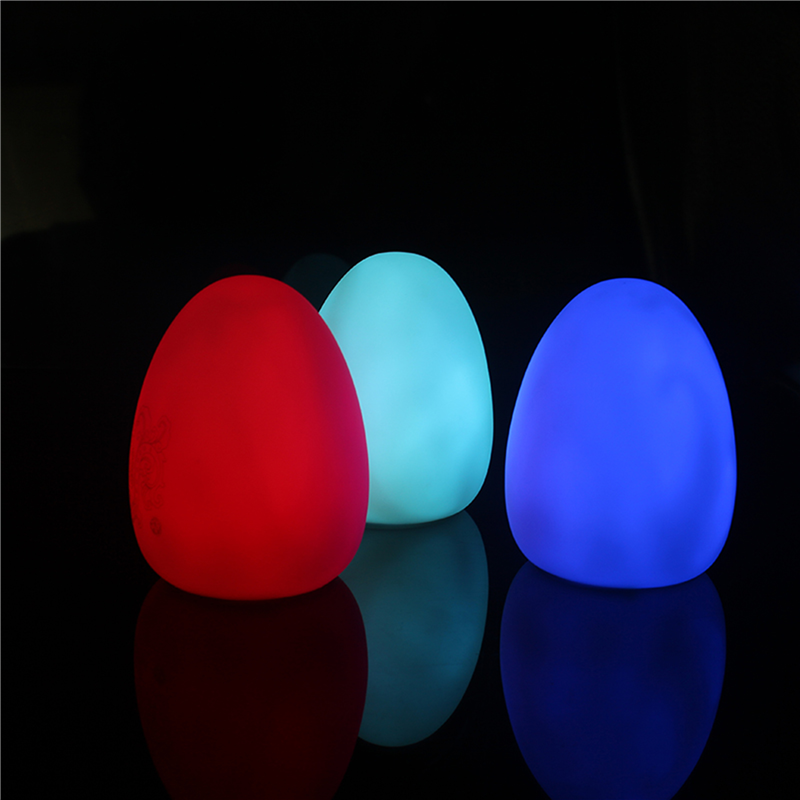 This colorful night light is in the shape of an egg and is very suitable as a gift or decoration for Easter. You can put it on the bedside, just gently push the switch at the bottom of the product, the warm light flashes instantly, red, blue, pink... colorful and brilliant, so you are no longer afraid of the dark. You can also place it in the corner of the corridor, in the closet, in the car seat, tool box, storage box and other corners with insufficient light. It can arrange every corner of the home like the stars in the night sky, warm and romantic.You can also print the company's name or logo on the surface of the product.