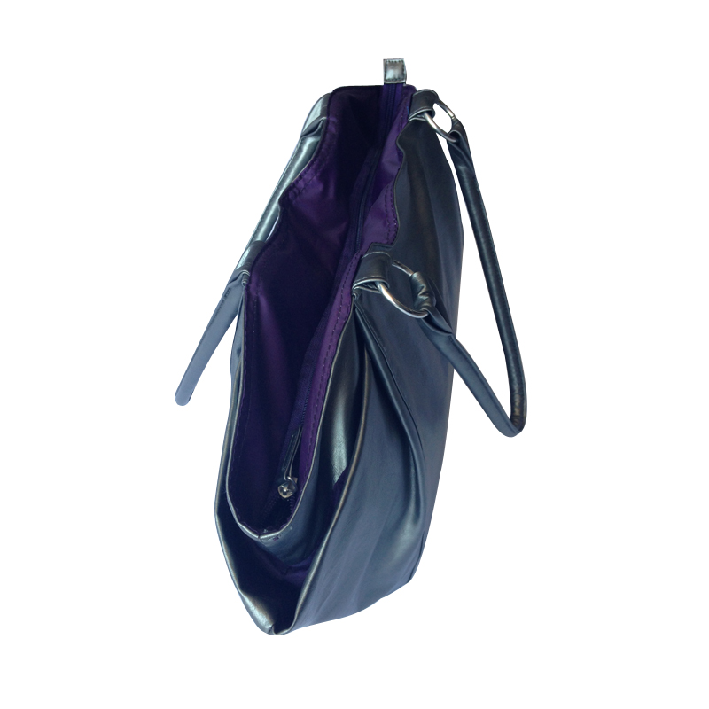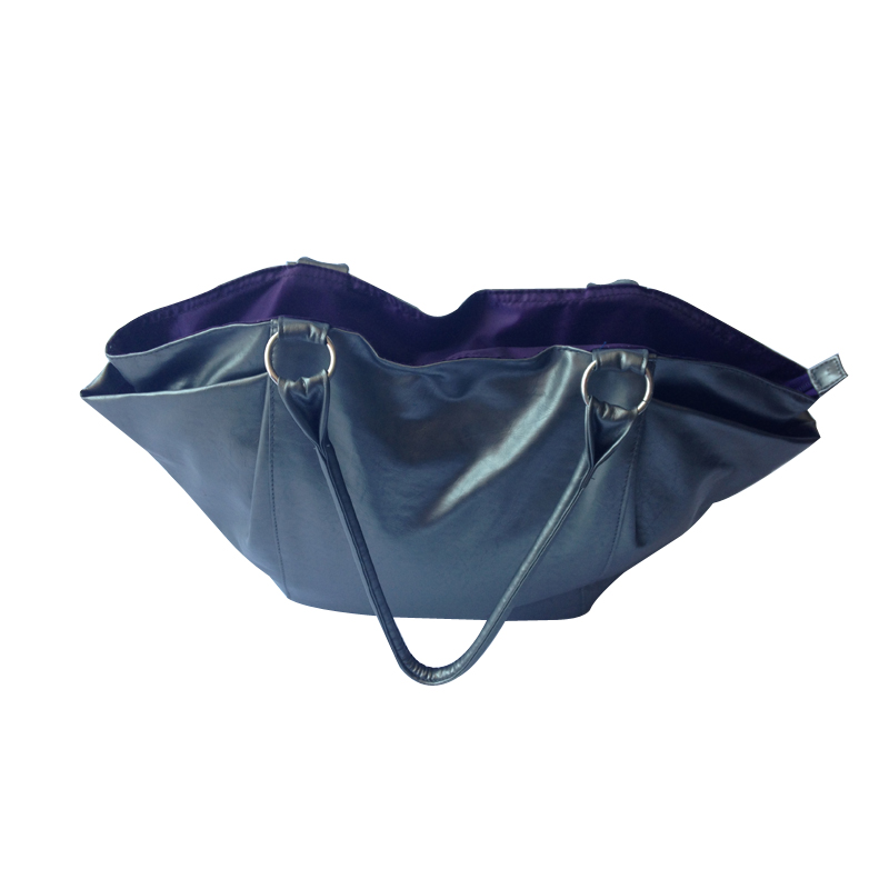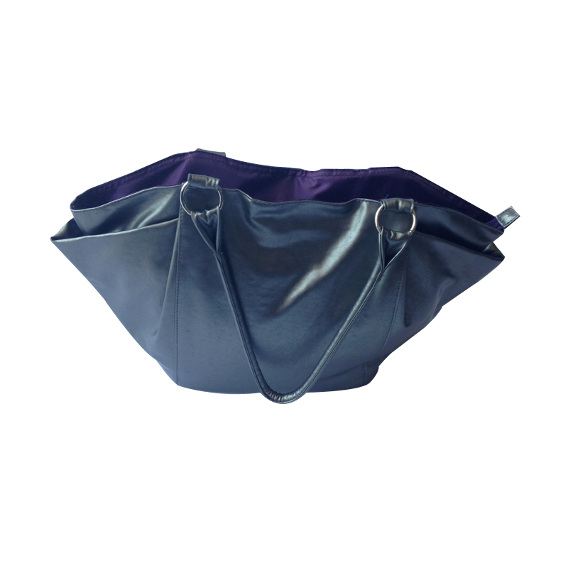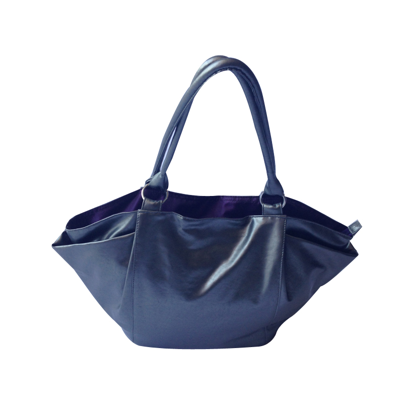 This hand bag is made of PU. It's suitable for women to go shopping with fashionable design, can put many stuff on it.