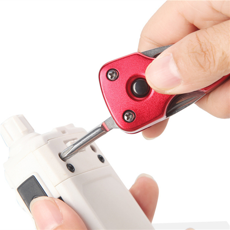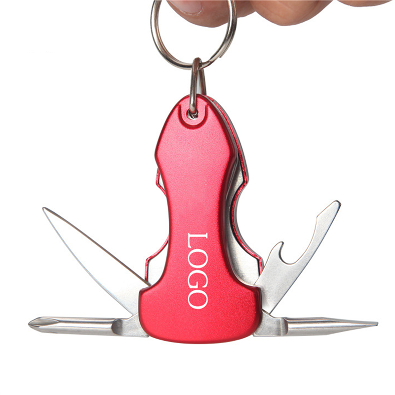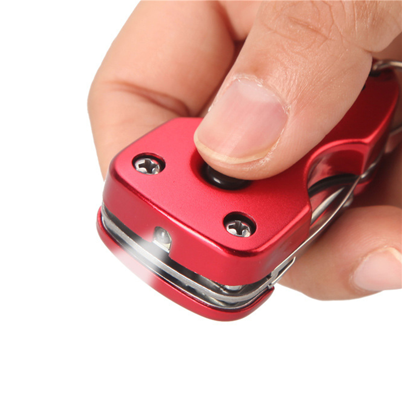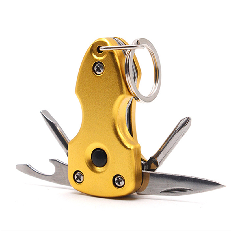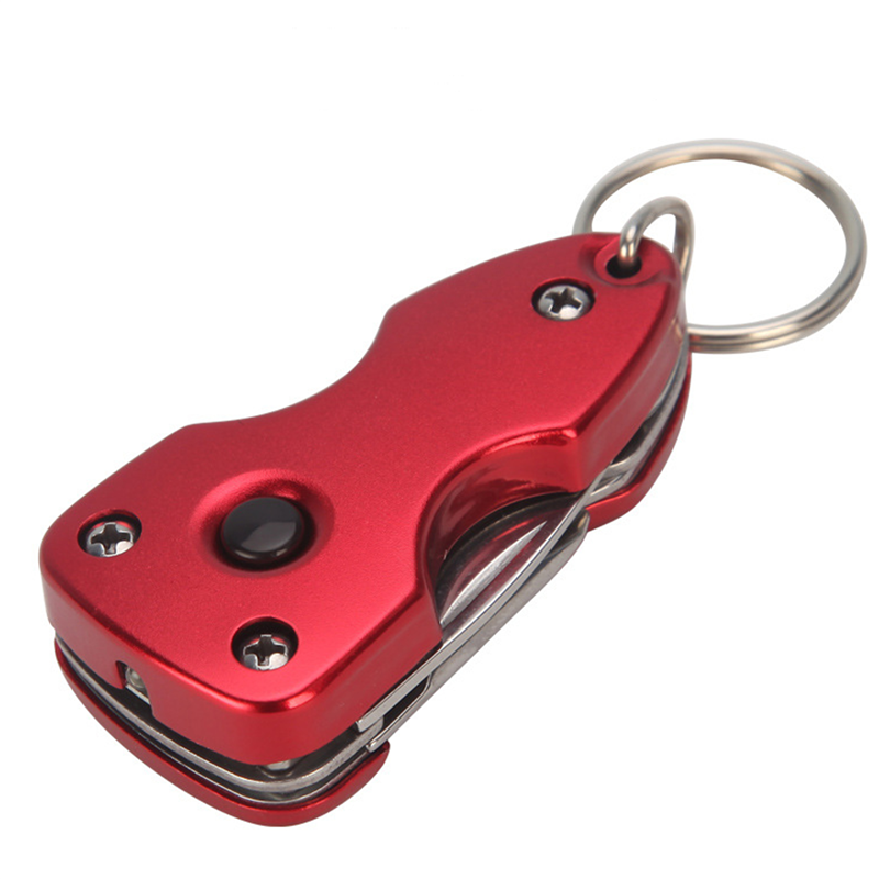 This multifunctional tool has a beautiful appearance and novel design. It is compact and easy to carry. The product uses high-quality materials, stable and durable. This tool has six functions: key ring, knife, LED light, phillips screwdriver, bottle opener, and slotted screwdriver. It can be used in camping, mountain climbing, emergency rescue, outdoor expansion, etc. You can also print the company's name or logo on the surface of the product.