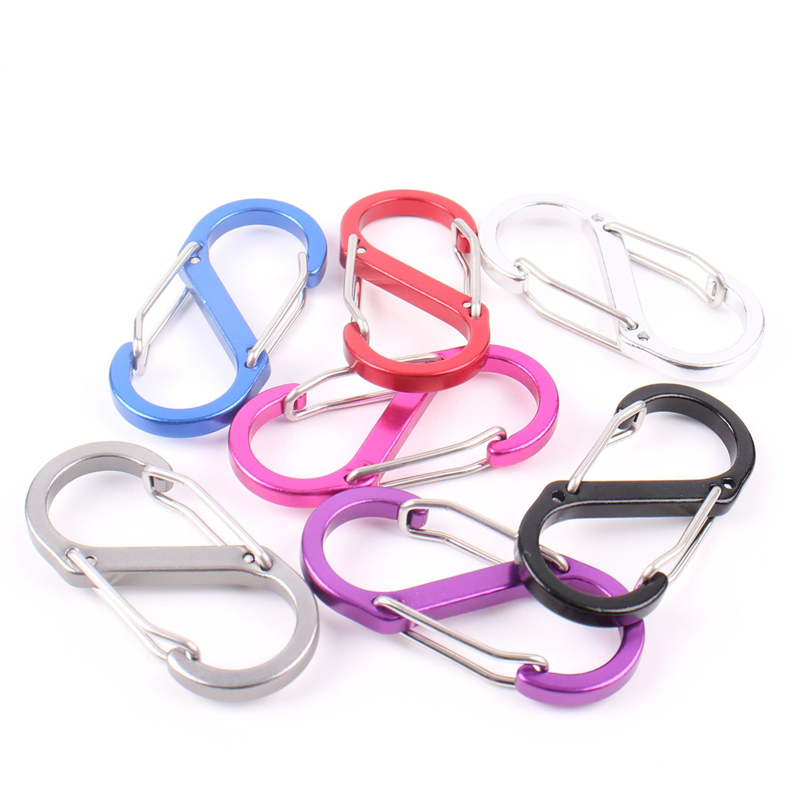 The material of this carabiner is aluminum alloy. It is waterproof, wear-resistant and durable. It can be hung in places such as a kettle, backpack or key. It can also be used to connect ropes and tents. We have two shapes for you to choose. Our price is the price of S-shaped carabiner. If you need the price of another shape, please feel free to contact us. The size and shape of the logo can be customized.