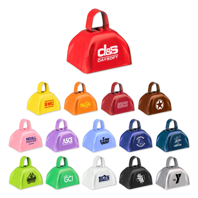 Give your cause a new voice with this 3" cowbell. Customized with your organization's name and logo, its the perfect way to promote team pride, concert events, and any other festivity that you want to be seen and heard. Give this unique cowbell a ring during the game and at promotional events; whenever you want to make a little noise. Make sure you company's name always rings a bell. Complies with CPSIA. 3" H