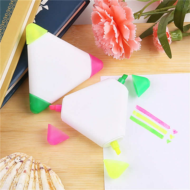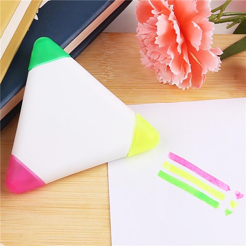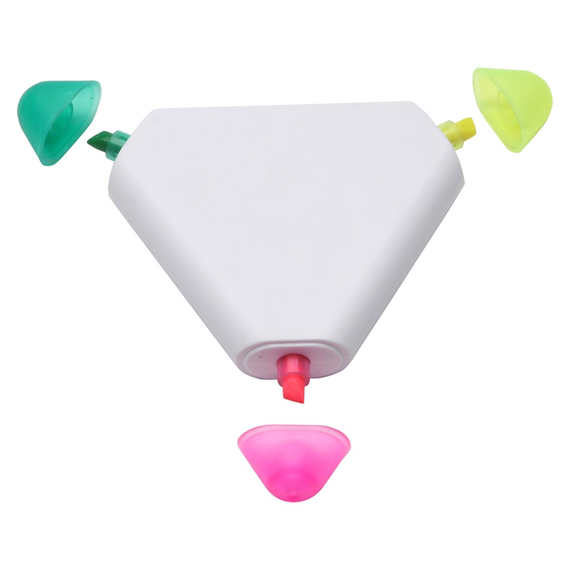 This is a three-in-one highlighter. There are three colors. Bright and easy-to-view colors make text clear and easy to read. This highlighter is easy to carry. You can put it in your pocket and school bag. There are many colors to choose from: pink, yellow, orange, blue, green. You can also print the company's name or logo on the surface of the product.