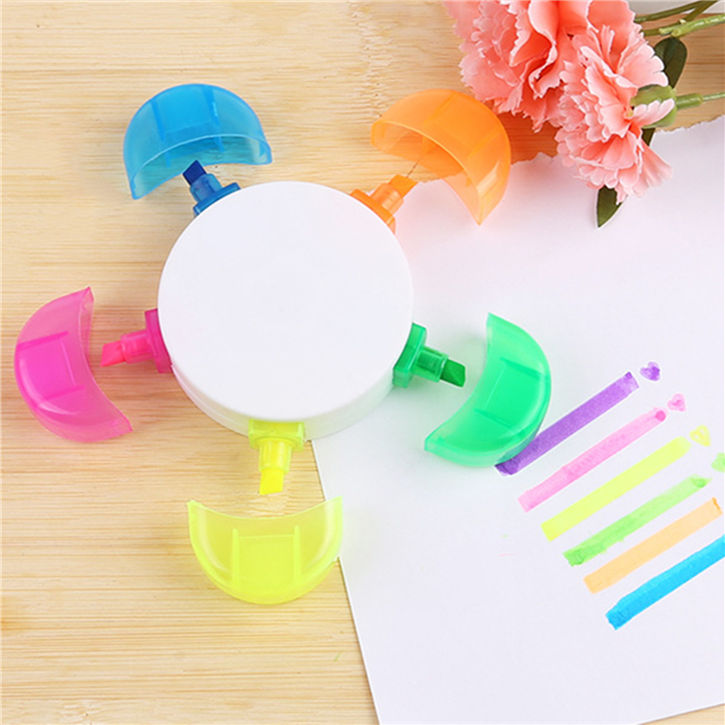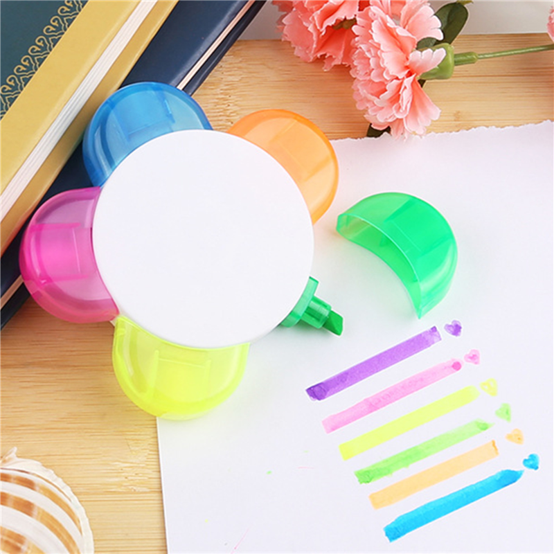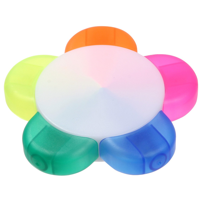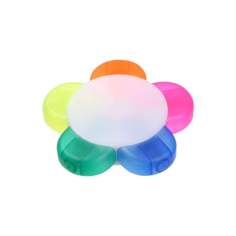 The Flower Highlighter offers the convenience of five highlighters in one. It comes in the shape of a flower with five different colors represented by each petal. It's perfect to give to students. The bright, fluorescent inks have transparent, read through color and are bold enough to highlight any document. With its huge imprint area, your company logo or message won't be missed!
