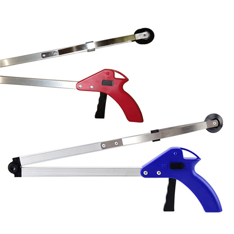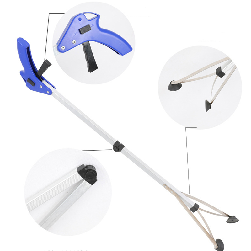 The material of this garbage picker is ABS + aluminum alloy. It can be folded. The size before folding is 31.5". The size after folding is 15.5". The chuck is a suction cup non-slip design, which has a stronger grip and is not easy to fall off. We can silk-print the logo on the handle. Customize the size and shape of the logo.