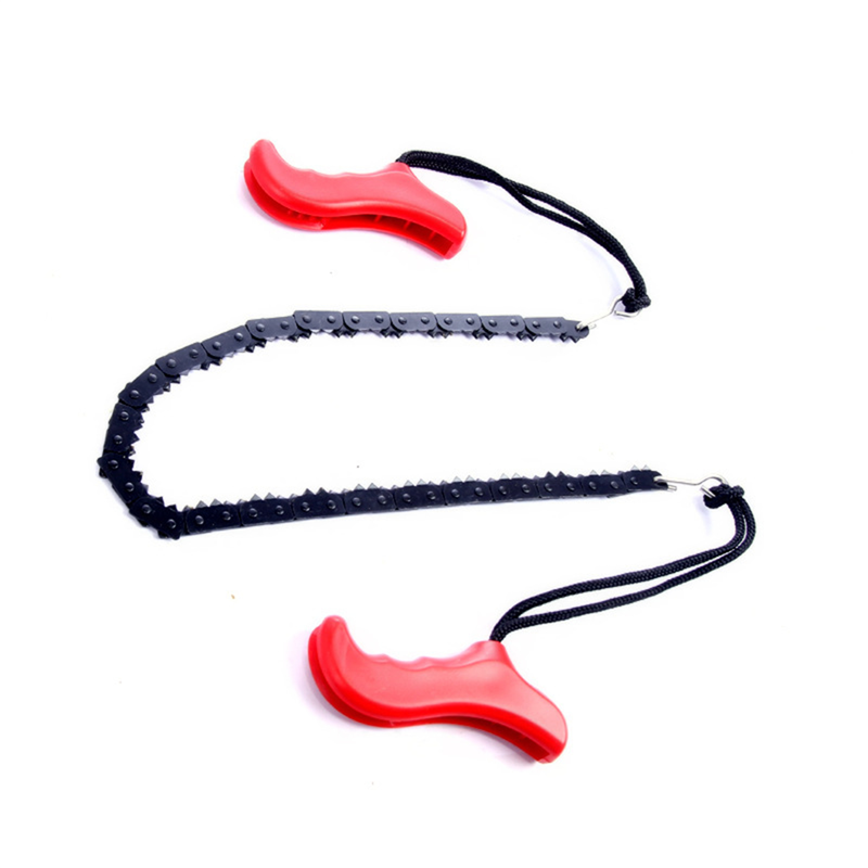 The material of this chain saw is 65Mn steel. Its total length is 39". The length of the chain is 20.5". It is easy to carry and does not take up space. Strong breaking capacity. The size, color and shape of the logo can be customized.
