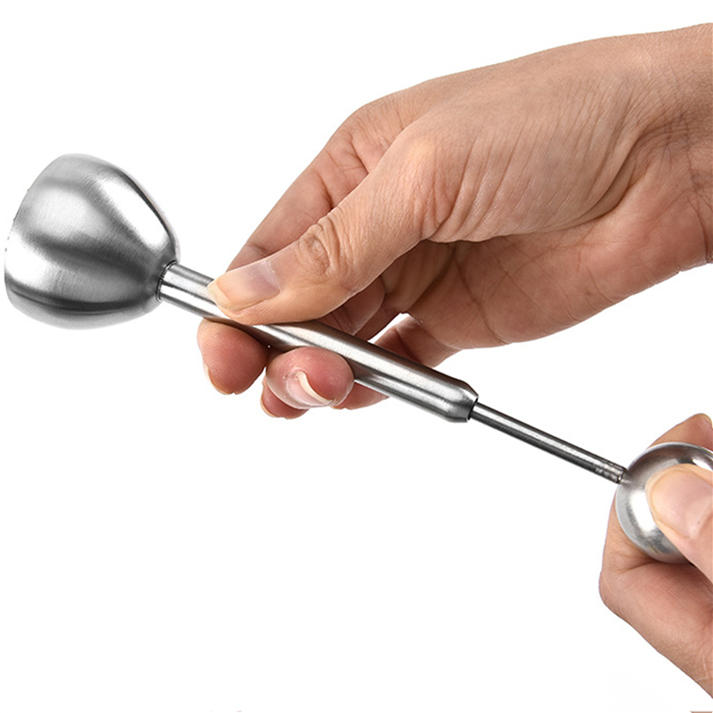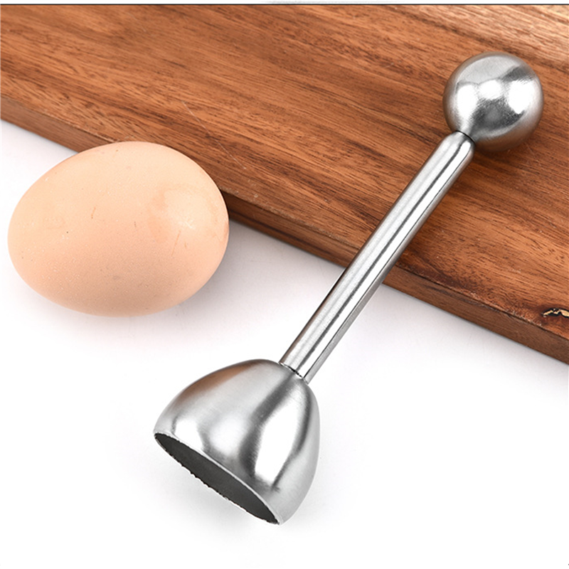 The material of this egg opener is stainless steel. It has a spring in its handle, which uses elastic force to open eggs. It is very suitable for home kitchen or catering industry. The shape and size of the logo can be customized.