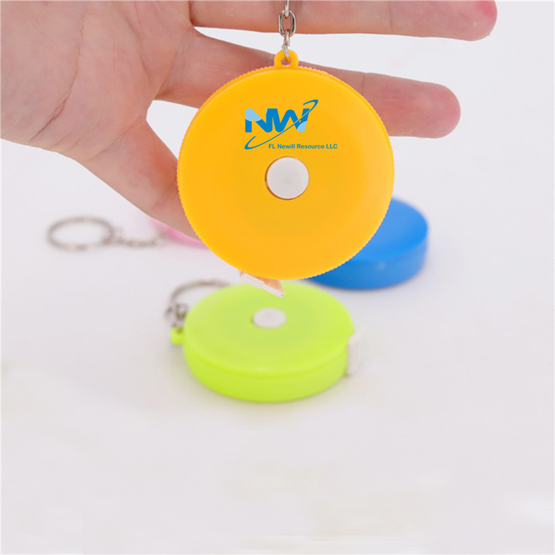 The material of this mini tape measure is ABS. It is a soft tape measure. The total length is 1.5 meters. easy to carry. We have a variety of colors for you to choose. The color, size and shape of the logo can be customized.