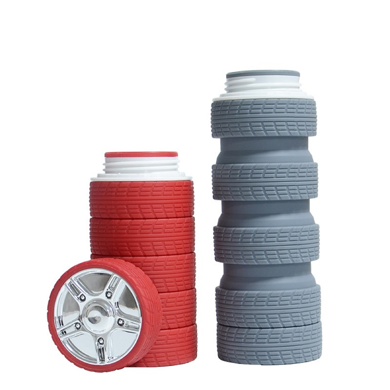 750 ML(25 ounce) tyre shape large capacity silicone folding water cup,this unique canteen sports bottle expands when filled, and when empty can be easily folded up to a compact size. Available with 25 fl. oz (750ml) capacity, designed with volume and portability in mind.An ideal companion for fitness activities, the gym, sports, camping, hiking and much more. 3.07" Diameter x 9.29" H