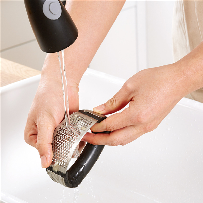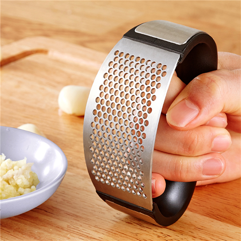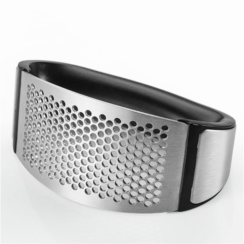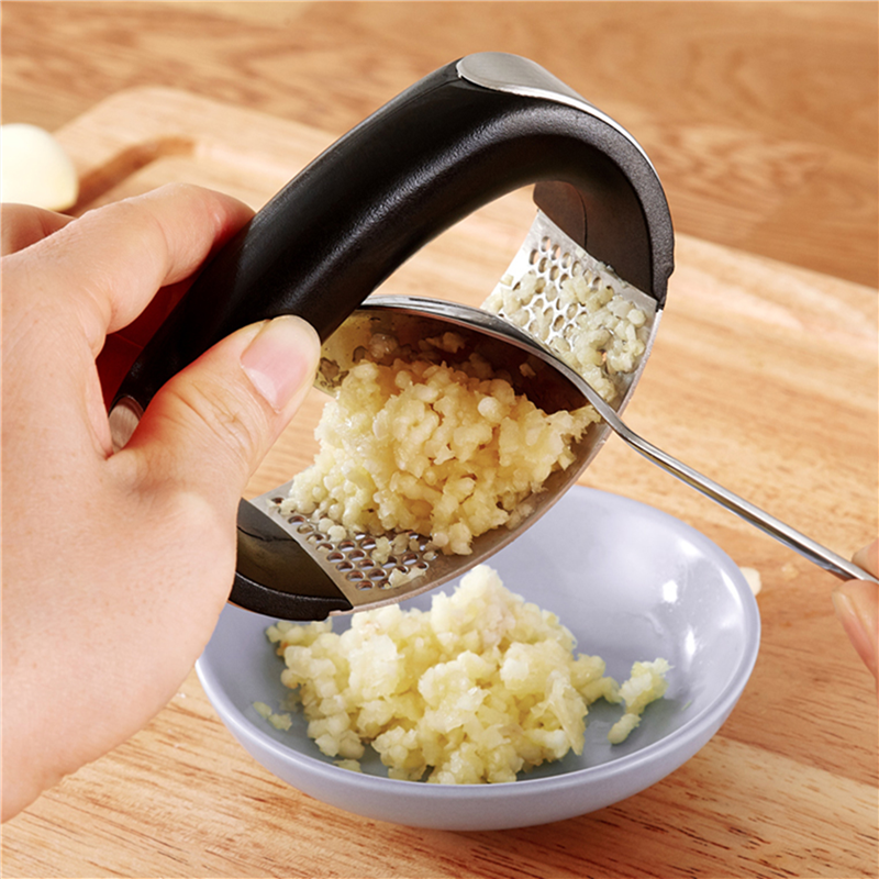 Garlic press is a handy kitchen tool that you end up reaching for when you need to cut garlic into smaller parts. A handheld garlic press allows you to press or crush garlic right into your mixing bowl for when you're whipping up Toasted Garlic Bread or simply mixing garlic with sauce for your meal. Stainless steel garlic press has the features of easy cleaning, arched design with O shaped easy to roll come with large easy to hold handle. The holes are fine and the garlic is delicate. The handle is non-slip and comfortable. You can also print the company's name or logo on the surface of the product.