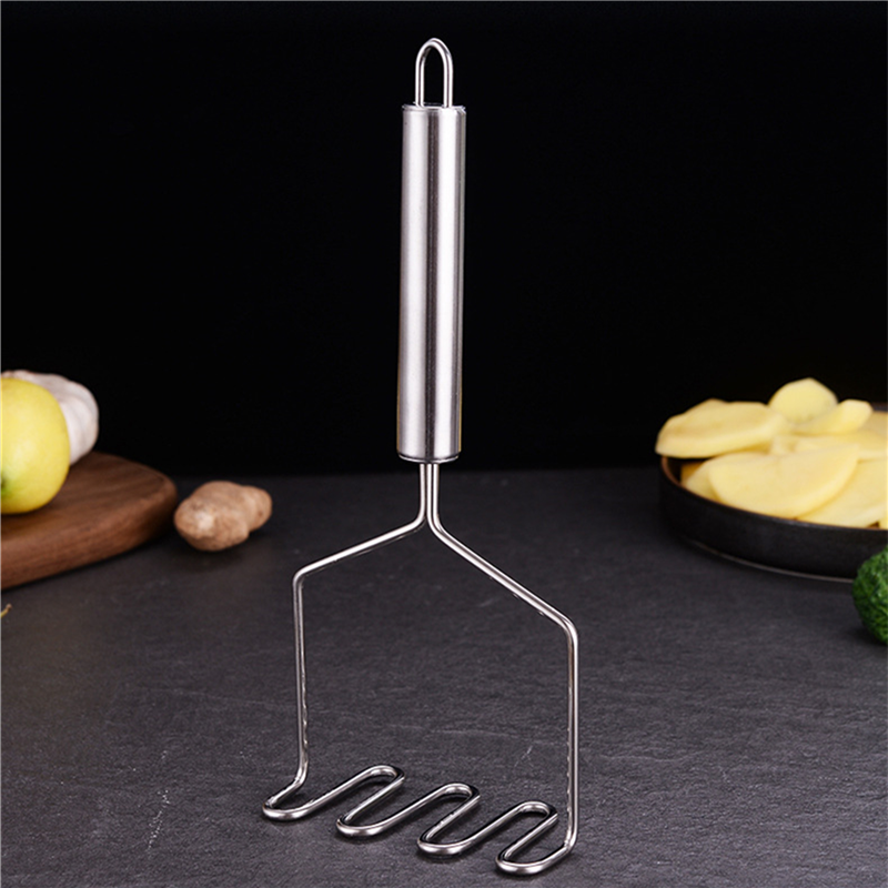 Made of stainless steel. It's highly convenient for use thanks to its broad vertical grip which makes applying pressure absolutely effortless. Perfect for mashing potatoes, squash, sweet potato, yams, pumpkin, parsnips, carrots, kiwifruit & bananas - Mashes food to a fine consistency. Your logo are welcome.