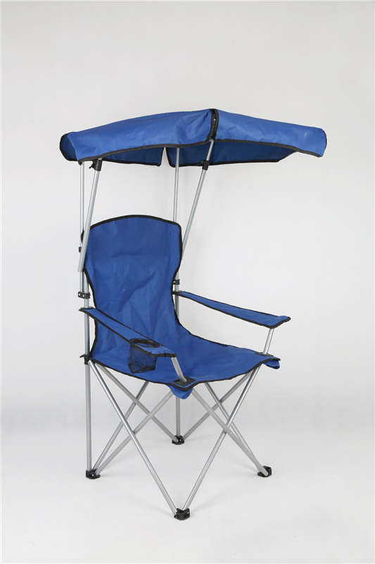 Create your own personal oasis from exposure to the hot sun at the beach, barbecue or other outdoor event with this folding chair with built-in shading canopy cover. This 20.5" x 20.5" x 33.5" chair has a metal frame with a Denier Oxford construction featuring a tubular design, mesh cup holder, top canopy, polyester carrying bag and 300 pound weight limit. Select from a wide range of colors and add your school, sports team, organizational or company logo, emblem or message to customize.