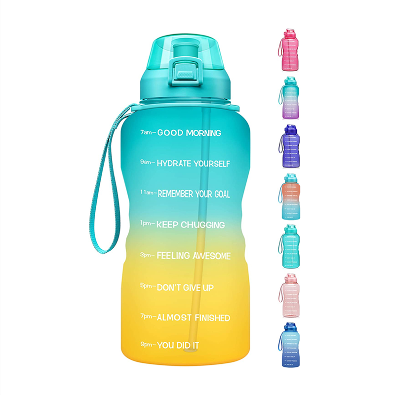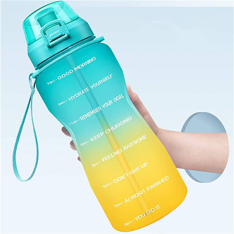 The material of this cup is PETG. Its capacity is 2200ml. Its cup has a time scale of one day. Help remind you of your drinking water needs throughout the day. If you need to customize the color of the cup, please feel free to contact us. The shape, color and size of the logo can be customized.