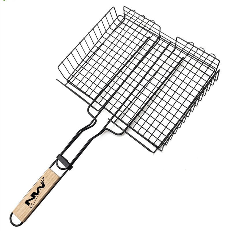 The material of this barbecue clip is stainless steel. It's ideal for grilling burgers, grilling steaks, grilling seafood, grilling vegetable,grilling fish, and other delicate foods. It's a great BBQ gift for your family and friends. The size, color and shape of the logo can be customized.