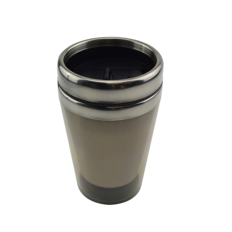 This Travel Tumbler has a smooth curved body for easy handling. It is made with stainless steel. Its insulated double-wall construction keeps drinks hot or cold. It also has a twist-on top lid that prevents any type of spill with side-lock drink opening.