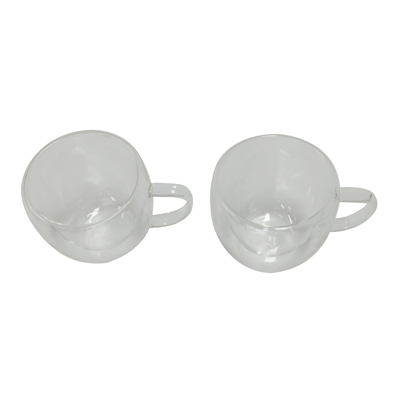 The double wall design of this D3.35 * H3.54 mug makes your java seem like it's floating in air and the thermal protection means no burned fingers. Add your company logo or message and soon your guests, employees or customers will be sipping in style. The clear glass mug is perfect for nearly any bistro, coffee house, cafe, restaurant or other business that likes to serve up excellence!