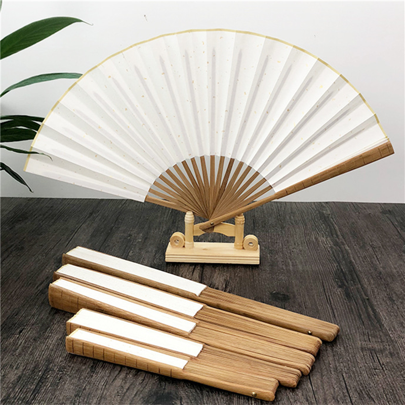 This folding fan is equipped with a frame made of eco-friendly, natural and sustainable bamboo. It is made of high-quality rice paper with smooth bamboo frame ribs. Very suitable for weddings, banquets, trade gifts, summer events, etc.! You can also print the company's name or logo on the surface of the product.