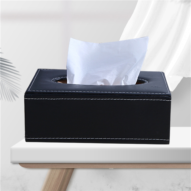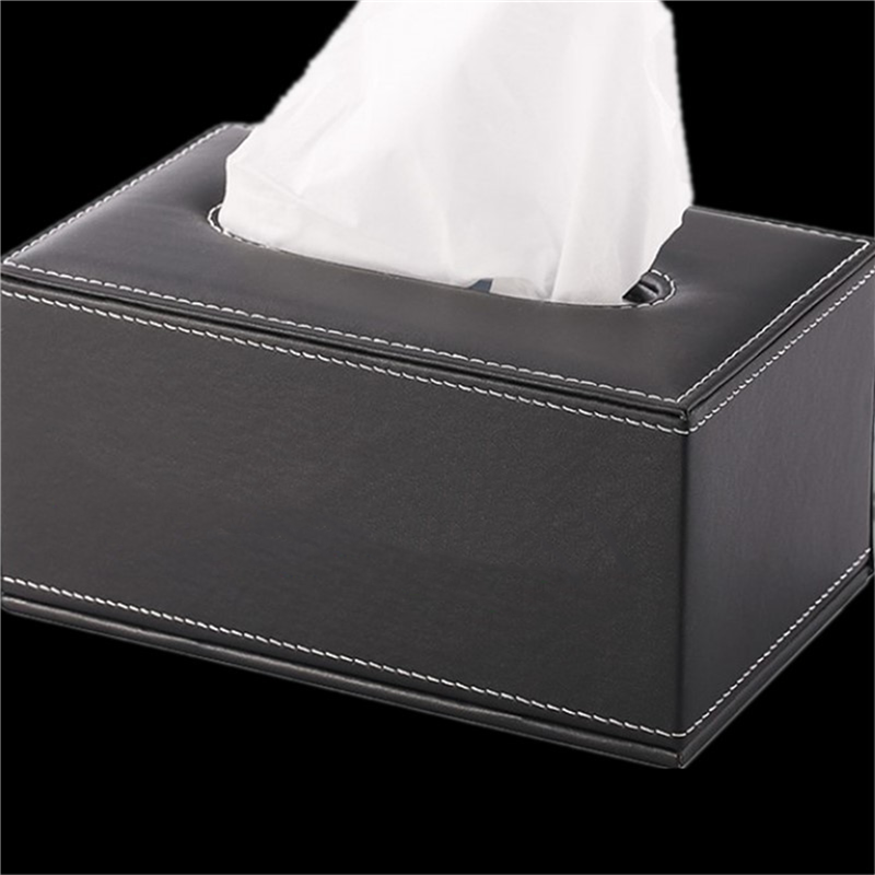 This leather tissue box is made of PU leather and wood. The material is soft and not easy to be damaged.The paper is placed from the bottom and there are four magnets that attract each other, so it's very strong.The bottom is waterproof and non-slip, and the top is filled with sponge for great comfort.You can also print the company's name or logo on the surface of the product