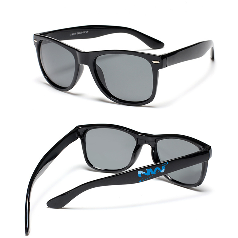 The material of this sunglasses is silicone + tac lens. There are matching glasses bag. The glasses are adult size. The logo can be customized on the glasses.