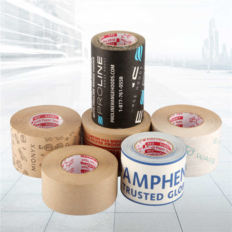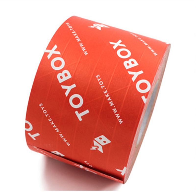 The material of this tape is kraft paper. The length of a roll is 4528". The width is 3". This packaging tape has a strong grip adhesive. Very suitable for sealing boxes or gift packaging. It can meet your packaging and transportation requirements. The shape, size and color of the logo can be customized.