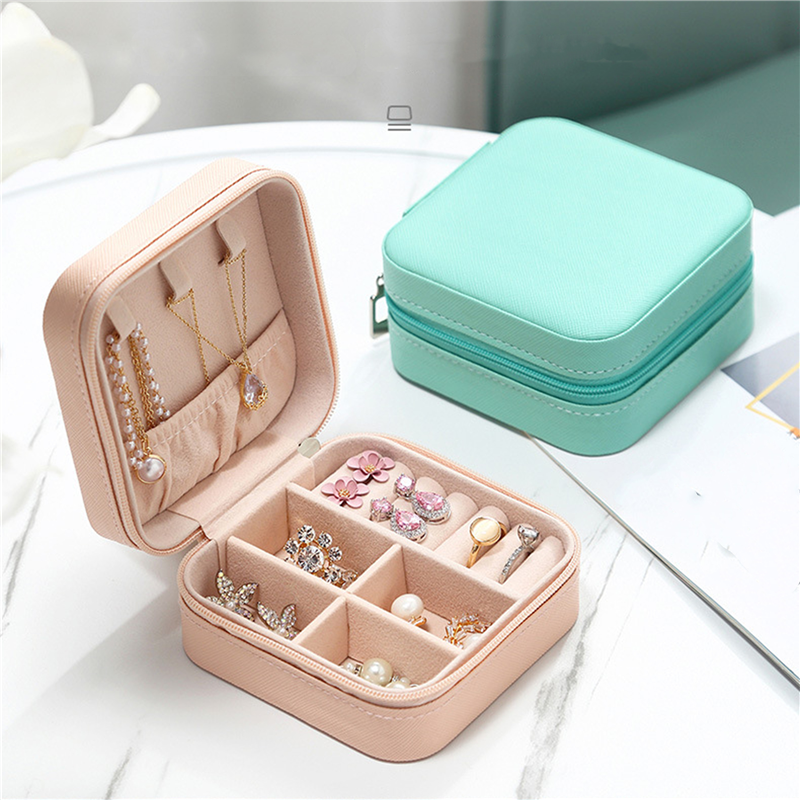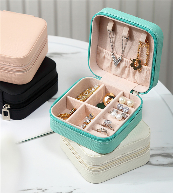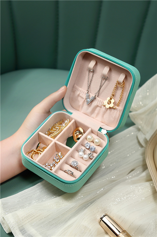 The material of this jewelry box is PU + flannel. You can put bracelets, rings, earrings, etc into it. It is very suitable for use when going out or at home. Custom logo is available.