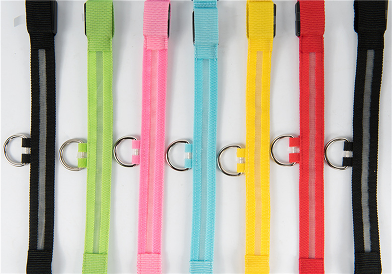 The material of this dog leash is polyester. With two CR2032 batteries. There are three lighting modes. Long light, fast flashing, slow flashing. The size, shape and color of the logo can be customized.