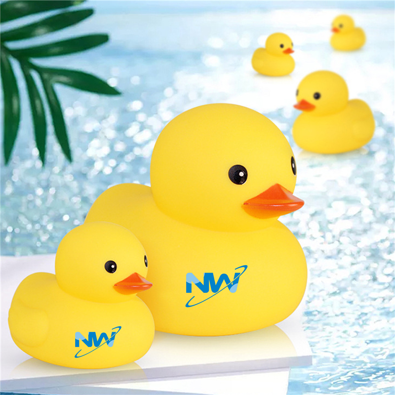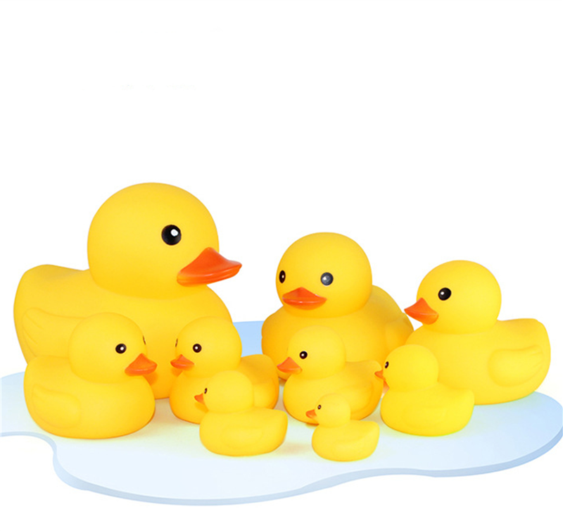 The material of this toy duck is environmentally friendly high-quality vinyl PVC. The size is 2.2"*1.9"*1.7". It can make a sound. The best toy to accompany your baby in the bath. We have many sizes and colors to choose from. If you need, please contact us by email. We will provide you with satisfactory service.