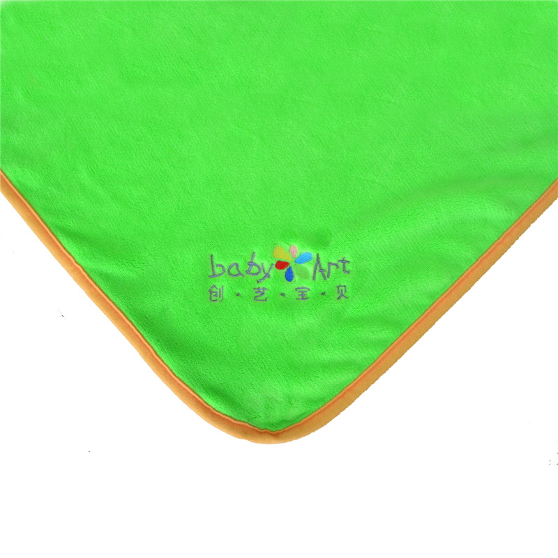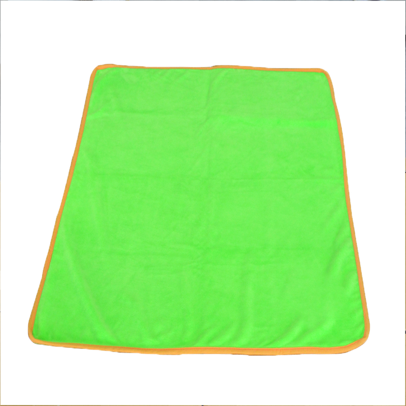 This 260gsm blanket is made of coral fleece. Its size is 40" x 48". It is amazingly soft and supple. Many colors are acceptable, and you can choose both silkscreen and embroidery logo.