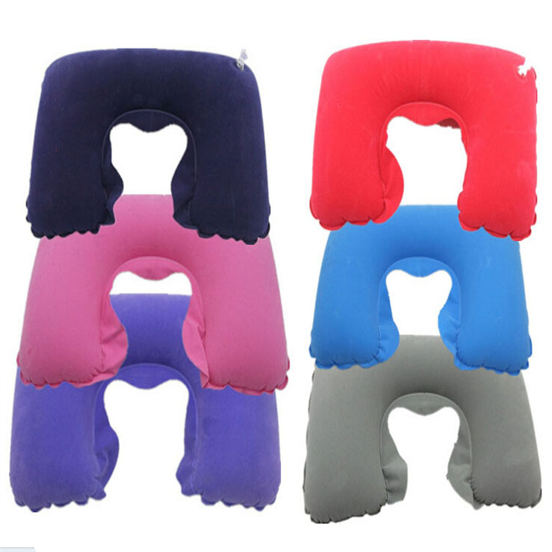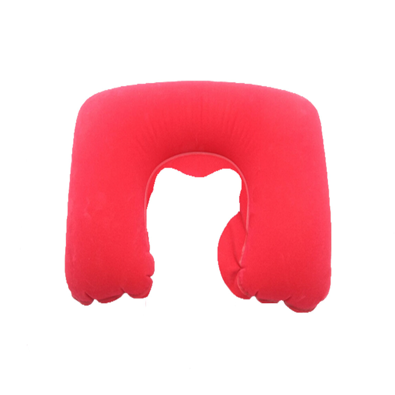 This U-shaped inflatable travel pillow is made of PVC flocking. It is easy to carry. It can be deflated when you do not need it and can inflate easily to keep your neck from getting sore and help you relax while traveling.