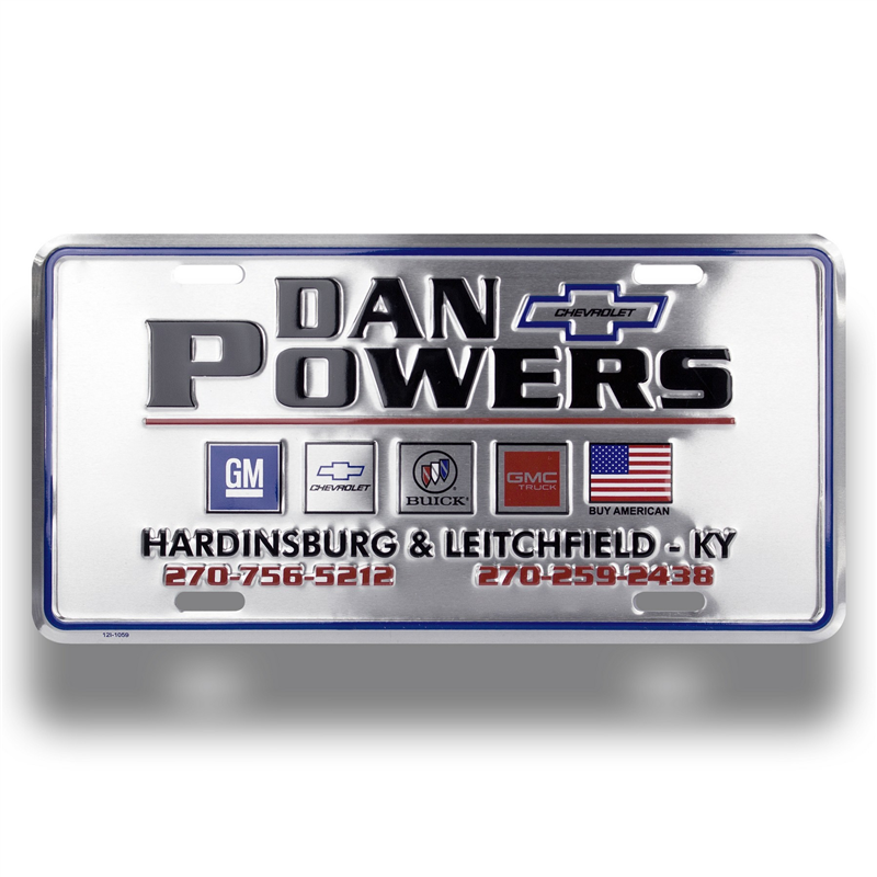 More than just a license plate, it's longevity in advertising! Manufactured from recycled aluminum, promote your business or simply make a statement with this metal embossed plate, perfect for both indoor and outdoor use. This is an ideal customizable product for a radio station, car dealership or a local sports team. Price includes one standard background color, one imprint color, embossing and four slots. Embossed metal license plate car tag. Made of 95% recycled aluminum. Made In USA. Complies with CPSIA, Prop 65. 6" L x 12" W x .024" Thick