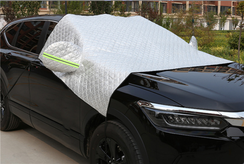 The material of this heat shield is cotton. It helps to absorb heat and prevent ice and snow. Save you from ice shaving in the morning. It is also very suitable as a sunshade in summer. Customize with your company's logo or brand.