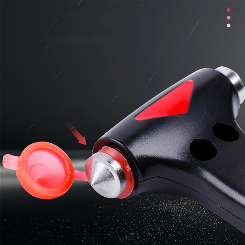 The material of this escape hammer is ABS+steel. A sharp and firm hammer can break the glass to escape in an accident. Hook-shaped built-in blade, cut the seat belt to escape in the event of an accident. The flat hammer on the back can be used as a hammer. Customize with your company's logo or brand.