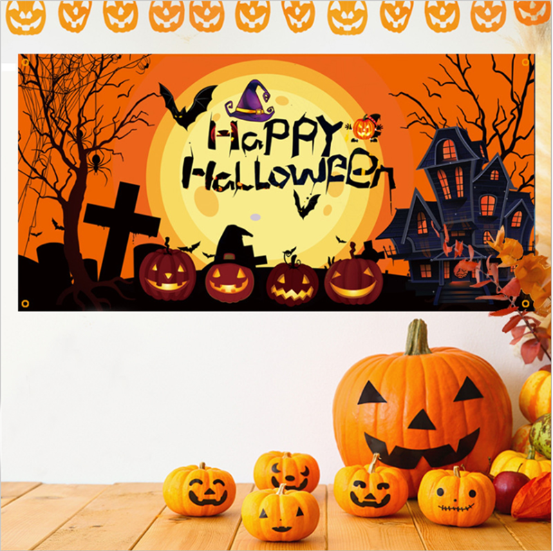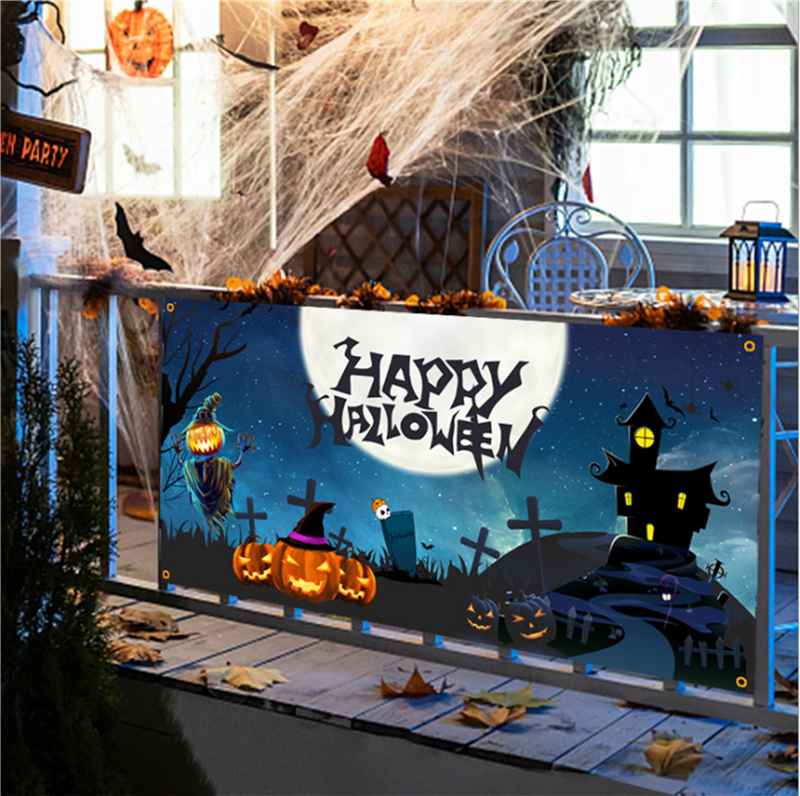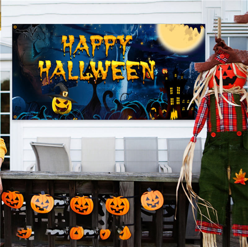 This banner is made of good quality polyester fabric. It is a perfect gift for Halloween celebration, garden and home decoration, can custom the patter, the size is 70"*35".