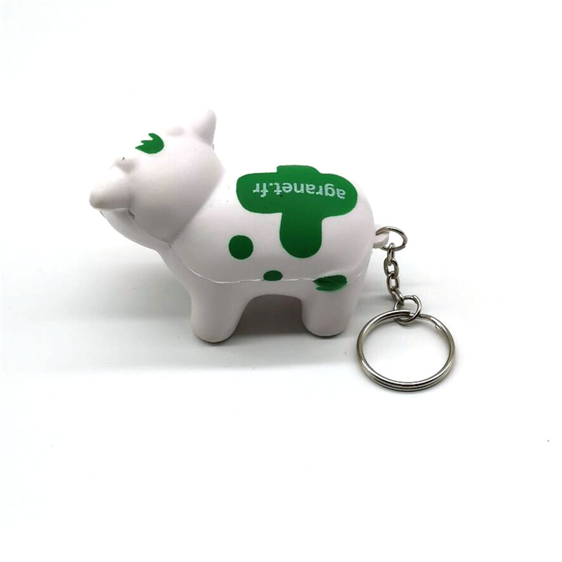 The material of this key chain is PU. It is a good decompression product. Easy to carry.The company logo and pattern can be customized.