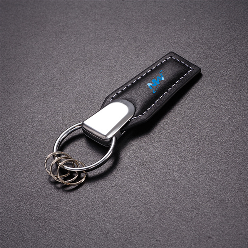 The material of this key chain is leather. It is very suitable to be used as a key ring for car keys. The style is simple and atmospheric. The company logo and pattern can be customized.