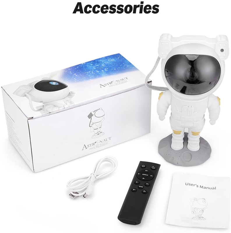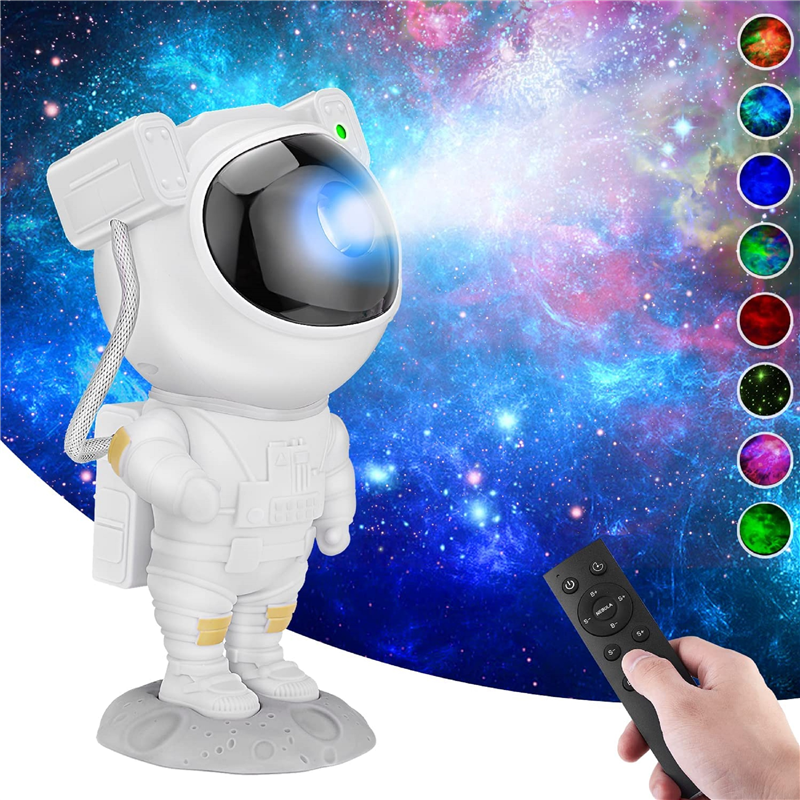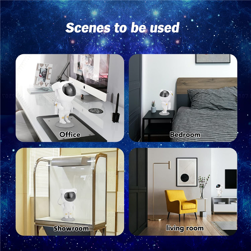 This starry sky projector can create colorful nebula and lifelike dreams, high-definition starlight galaxies and lightly twinkling stars. Different light modes can be switched by remote control or buttons on the backpack. The head of the astronaut can be rotated 360° by magnetic force, projecting the nebula to any place without restriction. In addition, the astronaut's arm can be moved to any poses you want, which is also a good decoration. Custom logos/patterns are available on the backpack part.