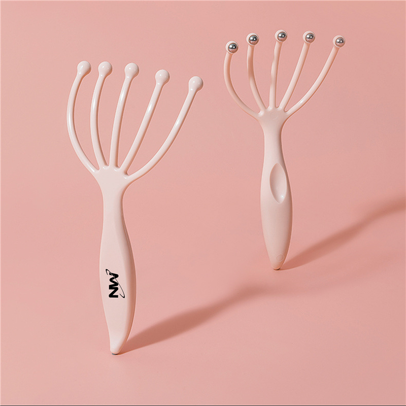 The Cascade 5-ball massager is a hand-held plastic massage comb with 5 fingers and a steel ball that can roll 360 degrees. Rub on the scalp or body in a circular or back and forth motion to promote blood circulation and reduce muscle tension. The metal ball has a cool and calming feeling to the skin. An easy-to-use treatment tool for comfort and stress relief. Can customize your logo.