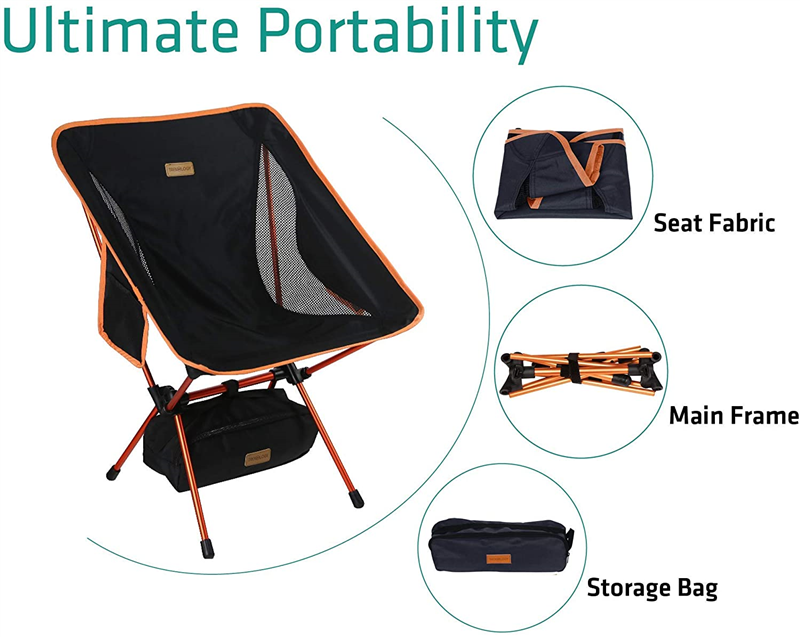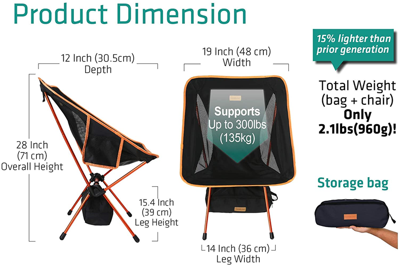 Our folding chair is much larger and more comfortable than similar items on the market. This lightweight camping chair features an ergonomic seat design for optimal comfort. The soft mesh panels give you plenty of room to relax.