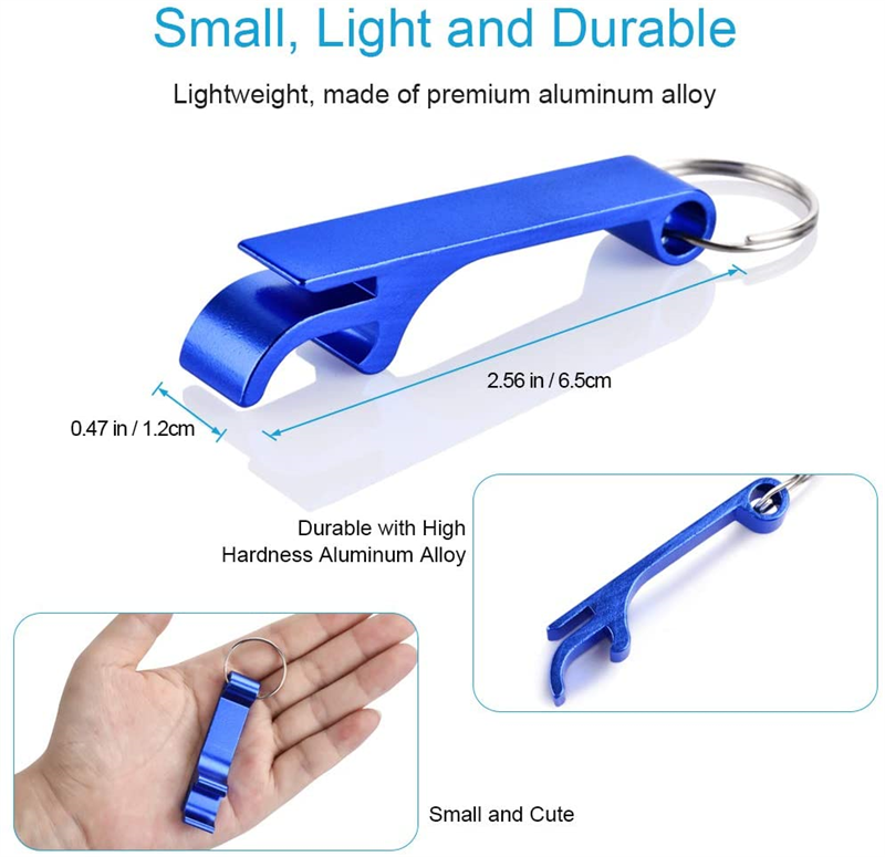 This beer bottle opener is made of premium aluminum alloy.It is durable for wear resistance and colorfastness.Only need a little pressure, you can open the lids of beer bottles easily. Super simple and practical. Laser logo is acceptable.